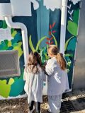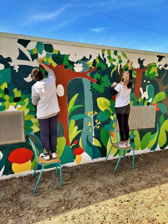 Cette semaine nos artistes en herbe ont bien travaillé. Sous les conseils de l'artiste Valérie Rodriguez, les enfants ont peint un décor sur le mur de la cour pour embellir et colorer le bois. Du CP au CM2 chaque enfant a pu laisser la trace de son talent.